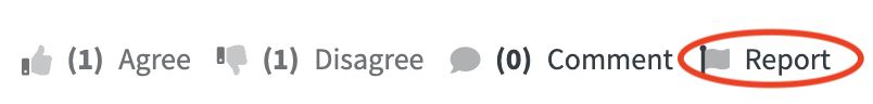 If you see something that breaks these rules or makes you feel unsafe, you can report it by clicking on the ‘Report’ button (see below). This will flag it to the Facilitators who will take appropriate action. Read on to find out more about what kinds of actions we might take.